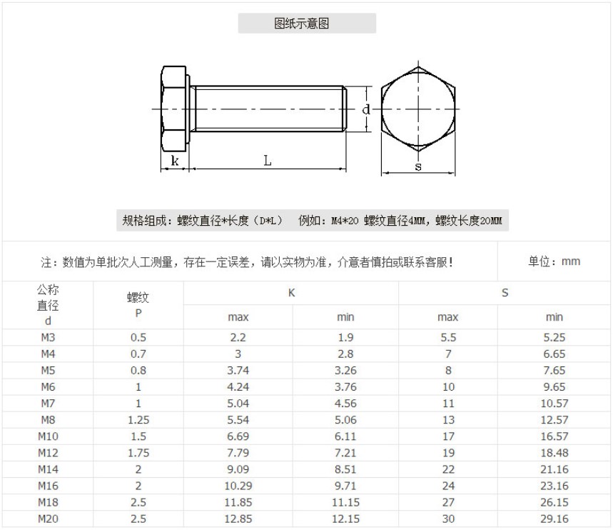 DIN933德標螺栓標準尺寸規格